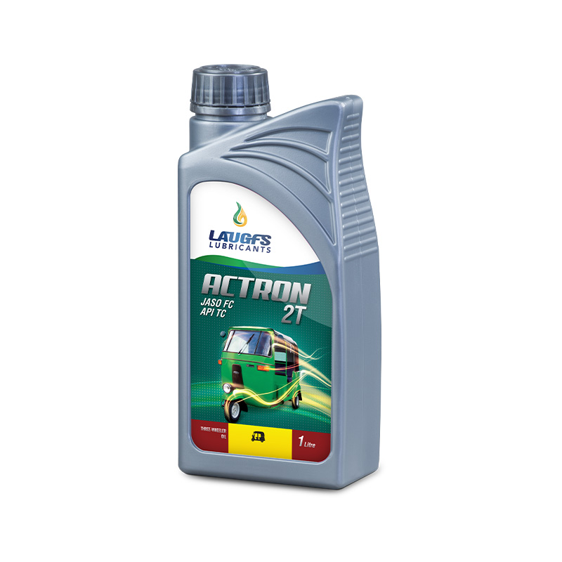LAUGFS ACTRON 2T is a low-smoke, semi-synthetic two-stroke engine oil formulated with low-ash additive technology to provide outstanding engine cleanliness and detergent performance in all two-stroke motorcycles, three-wheelers, and other engines.