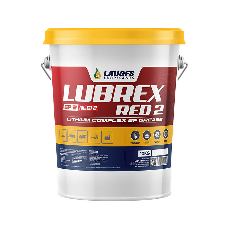 LAUGFS LUBREX RED 2 is a premium extreme-pressure (EP) NLGI 2 grease designed for a wide range of automotive, construction, wheel bearing, and chassis lubrication applications. It is formulated with high-quality mineral base oils and a lithium complex thickener, enhanced with EP additives, rust inhibitors, and oxidation stabilizers. It performs exceptionally under EP conditions, providing extended equipment life and reliable protection.