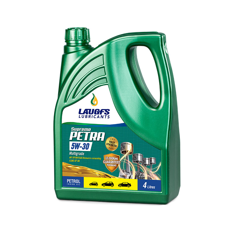 LAUGFS SUPREME PETRA (Synthetic) passenger car gasoline/petrol engine oils are designed with advanced technology to meet the latest performance standards and the demanding requirements of modern engines. These fully synthetic oils combine the latest API and ILSAC performance standards to deliver superior fuel economy, excellent engine cleaning, and wear protection. The fast-growing gasoline/petrol passenger car motor oil market increasingly seeks extended drain interval products that maintain peak performance throughout their service life. This product is ideal for customers looking for an engine oil that guarantees excellent performance between service intervals.